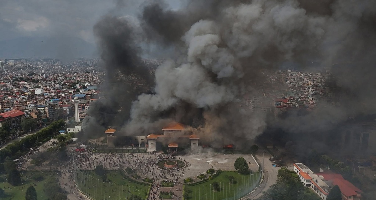 Kathmandu: The Parliament building in New Baneshwor, Kathmandu, has been set ablaze after protesters forced their way inside on Tuesday.