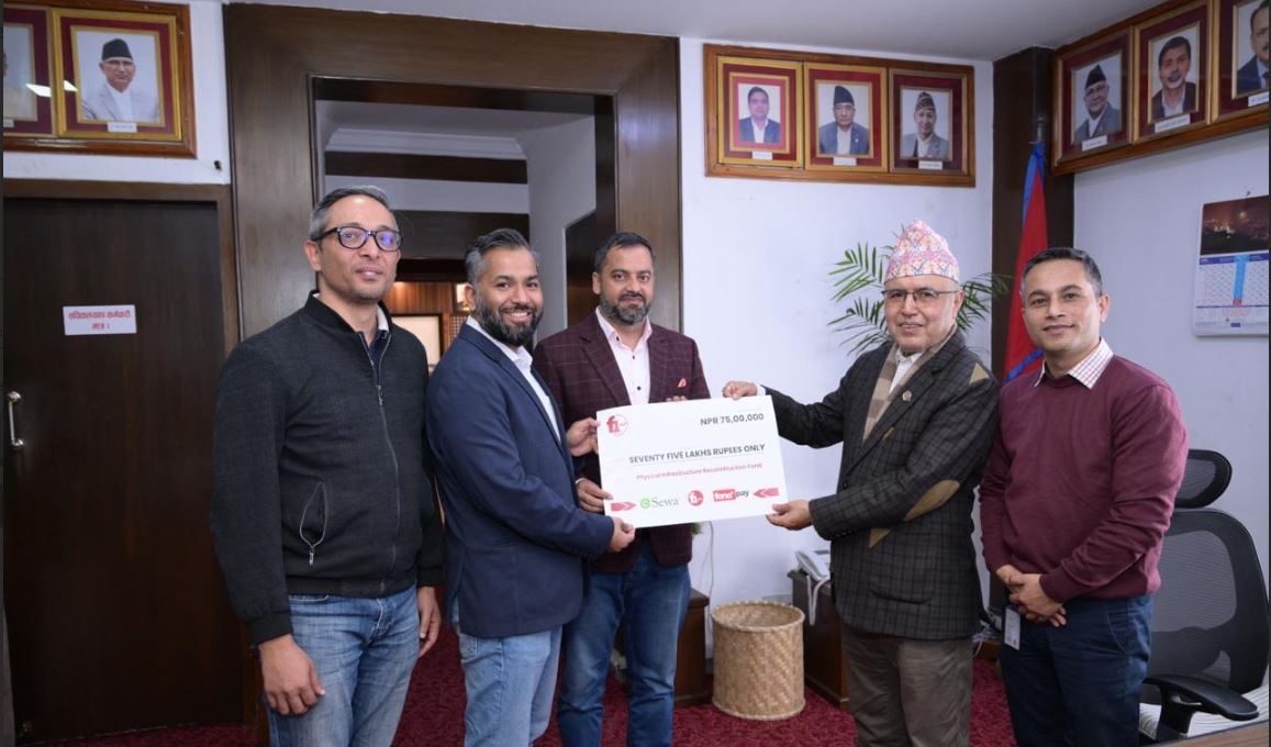 Lalitpur: Leading Nepali fintech company F1Soft Group has contributed Rs 7.5 million (approximately US$ 55,000) to the Government of Nepal’s Physical Infrastructure Reconstruction Fund.