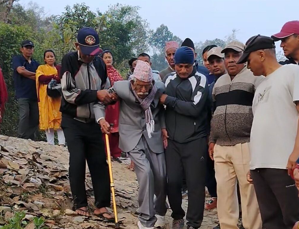 Damauli (Tanahu): One-hundred- and seven-year-old Ganesh Bahadur Rawat today voted under the House of Representatives (HoR) from Shuklagandaki municipality-3 in Tanahu.