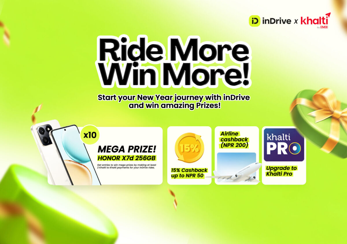 To qualify for the mega giveaway, users must book rides via inDrive and make payments using the Khalti digital wallet. A minimum of two ride payments to inDrive drivers through the Khalti app is required during the campaign period to be eligible.